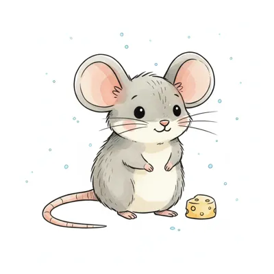 Eine süße Maus hält ein Stück Käse in ihren Händen.