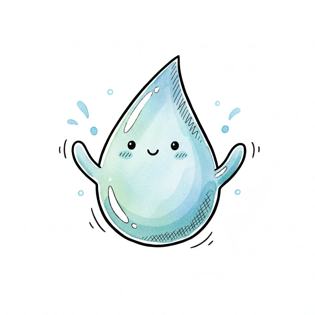 Kawaii Wassertropfen mit einem glücklichen Gesicht und ausgestreckten Armen.