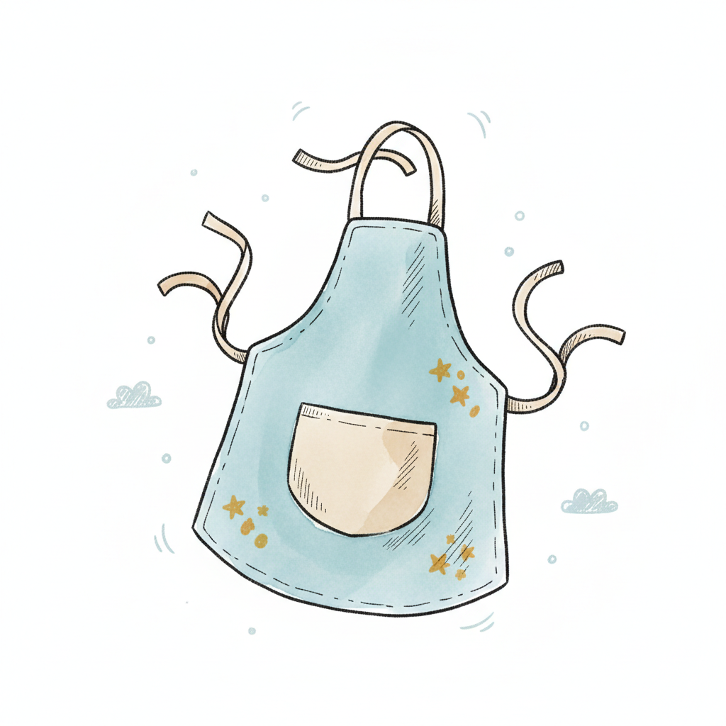 Ein stilvolles, hellblaues Schürze mit einer Tasche und Sternen.
