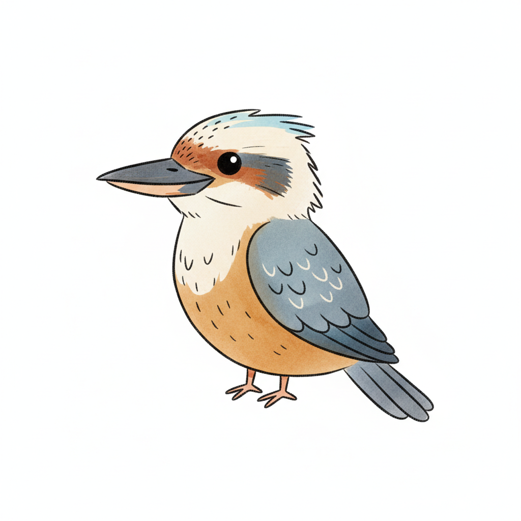 Bunter, cartoonartiger Vogel mit plumper Schnauze und gefiedertem Kopf.