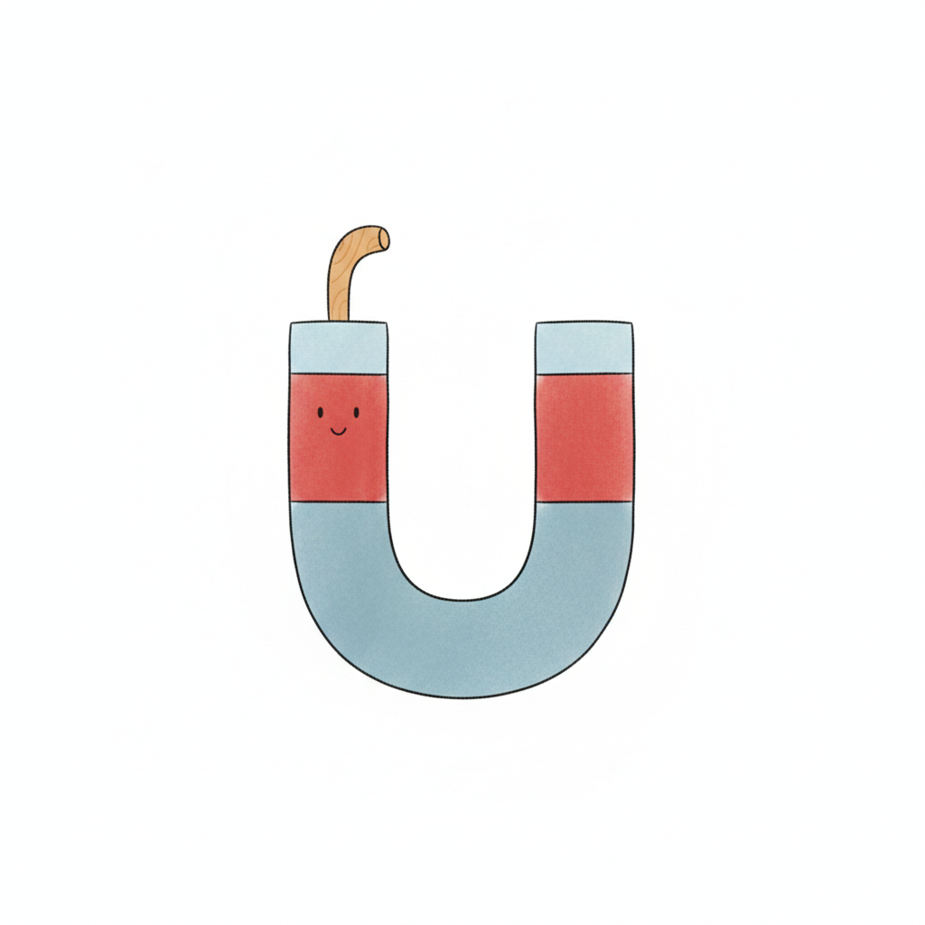 Ein fröhlicher Magnet in U-Form mit einem Lächeln.