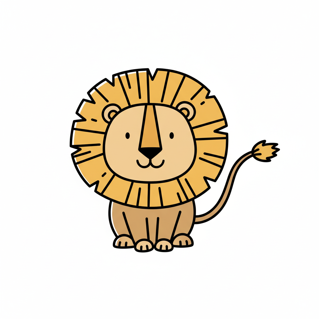 Ein fröhlicher, cartoonhafter Löwe mit einer großen Mähne.