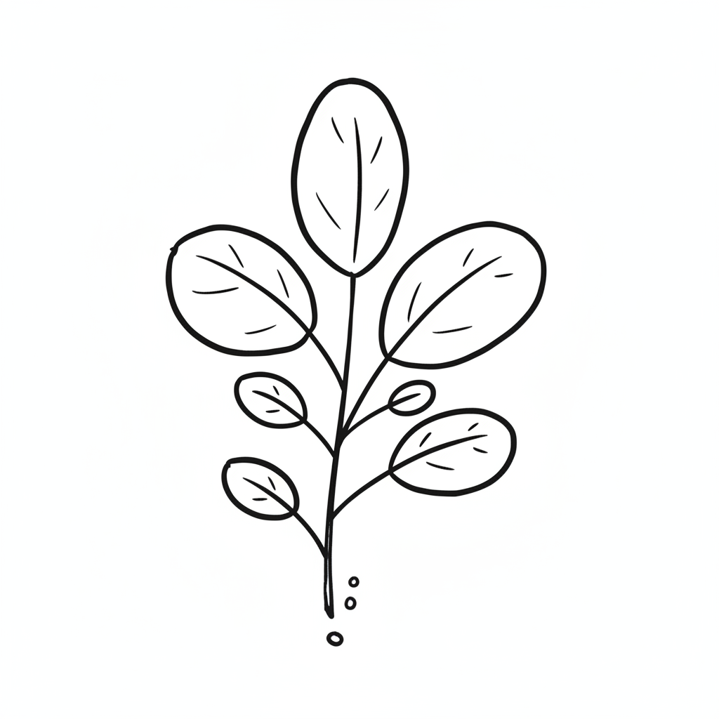 Ein stilisierter Zweig mit Blättern in einfacher, klarer Linie.