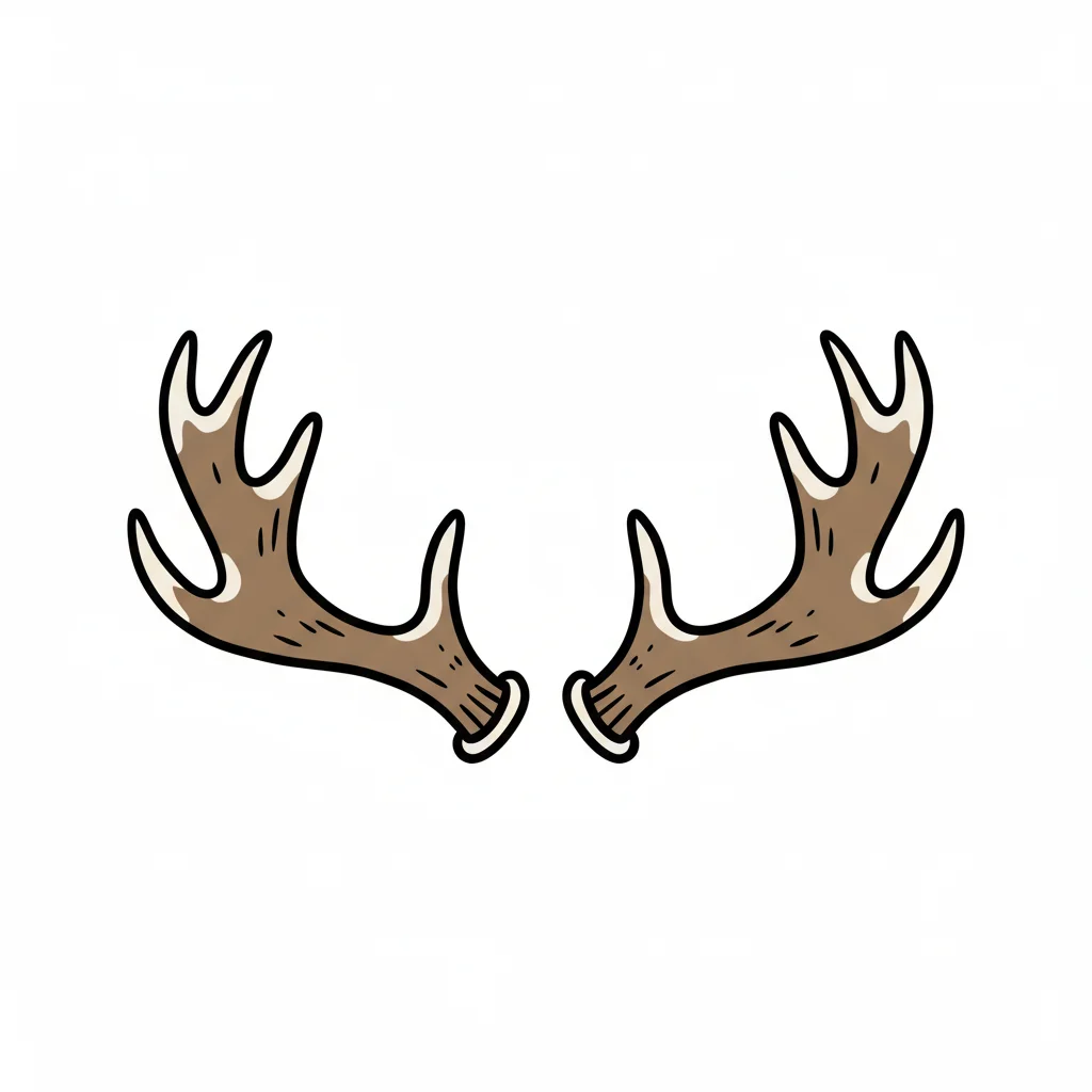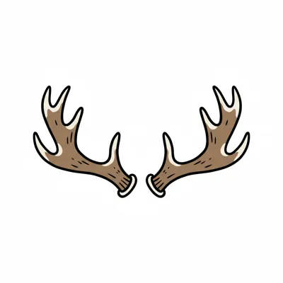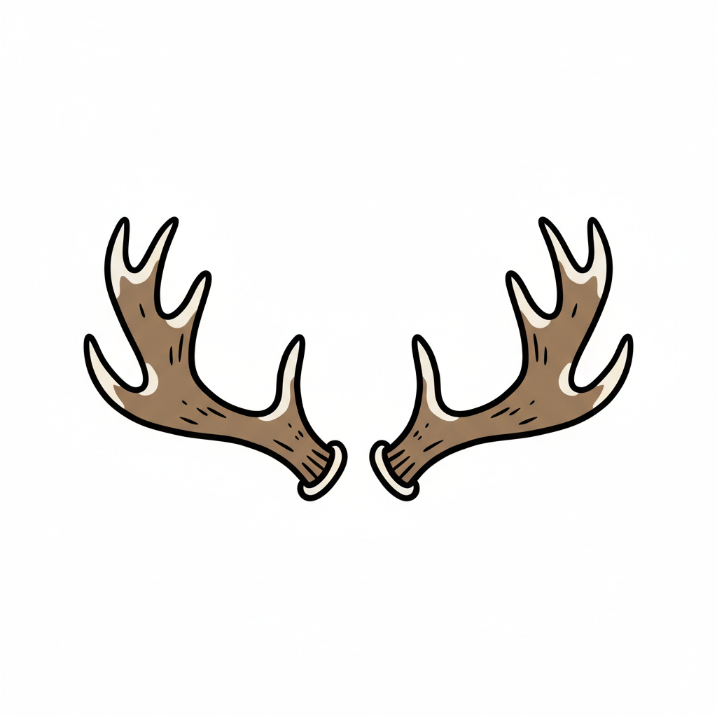 Zwei braune, gezeichnete Hirschgeweihe mit weißen Umrissen auf weißem Grund.