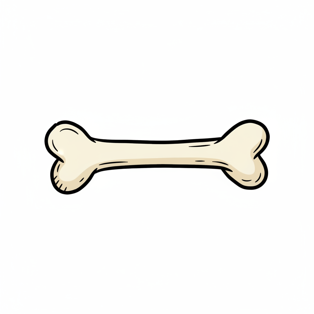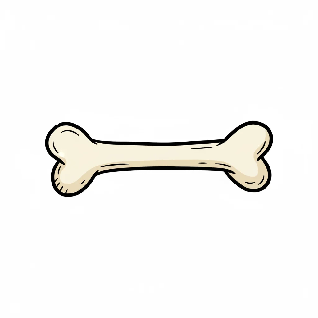 Cartoon-Knochen in Beige mit schwarzen Umrissen, isoliert auf weißem Hintergrund.
