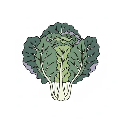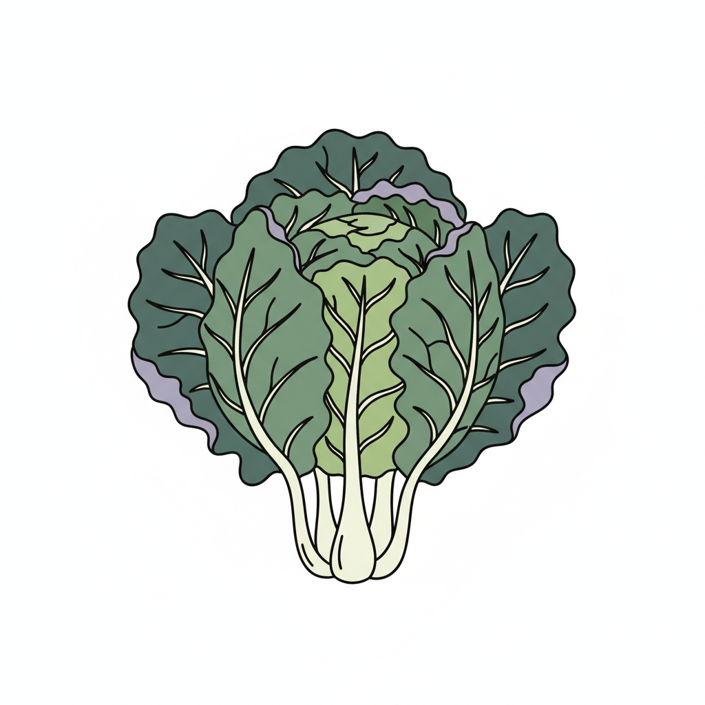 Stilisierte Illustration eines grünen Kohls oder Salatkopfes mit dunklen Umrissen auf weißem Hintergrund.