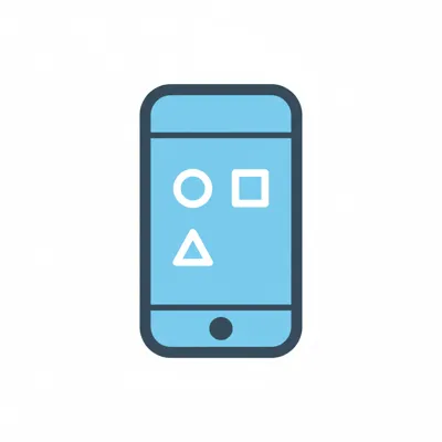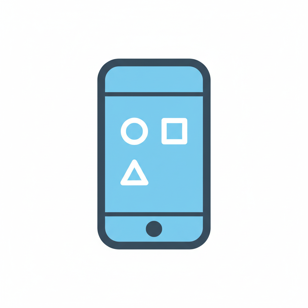 Blaues Smartphone-Icon mit Kreis, Quadrat und Dreieck auf dem Bildschirm.