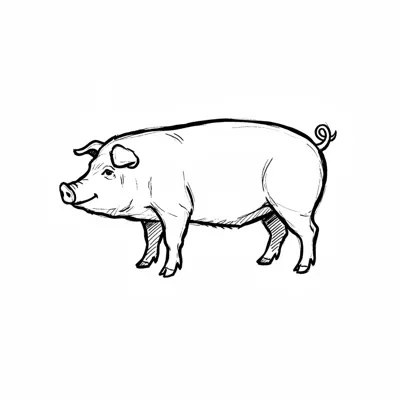 Eine skizzierte Zeichnung eines Schweins in Profilansicht.