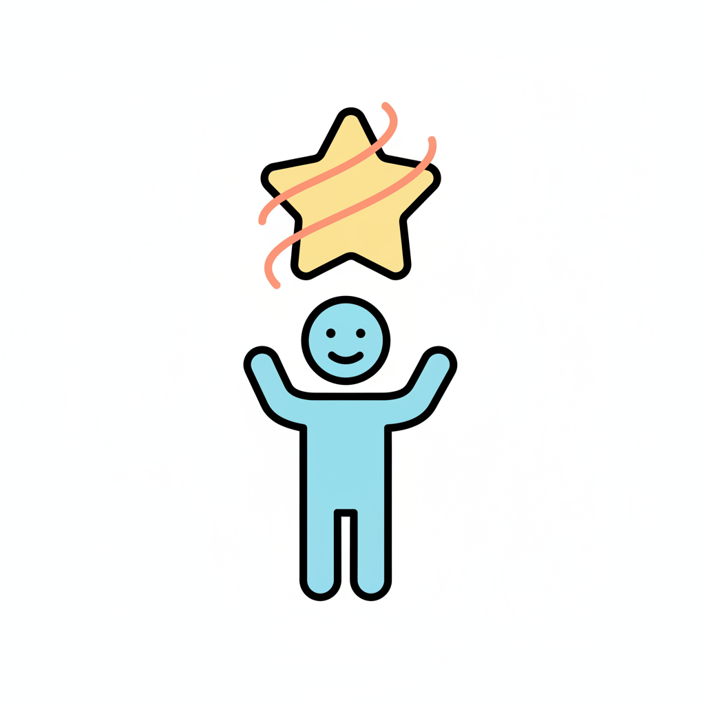 Ein glückliches Strichmännchen mit erhobenen Armen und einem funkelnden Stern darüber.