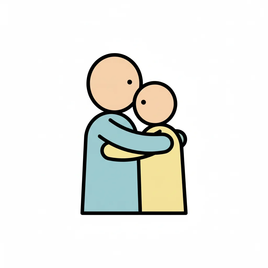 Ein größeres Strichmännchen umarmt ein kleineres liebevoll, symbolisiert Zuneigung.