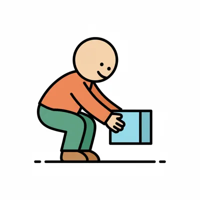 Strichmännchen hebt eine blaue Kiste mit korrekter Haltung vom Boden auf.