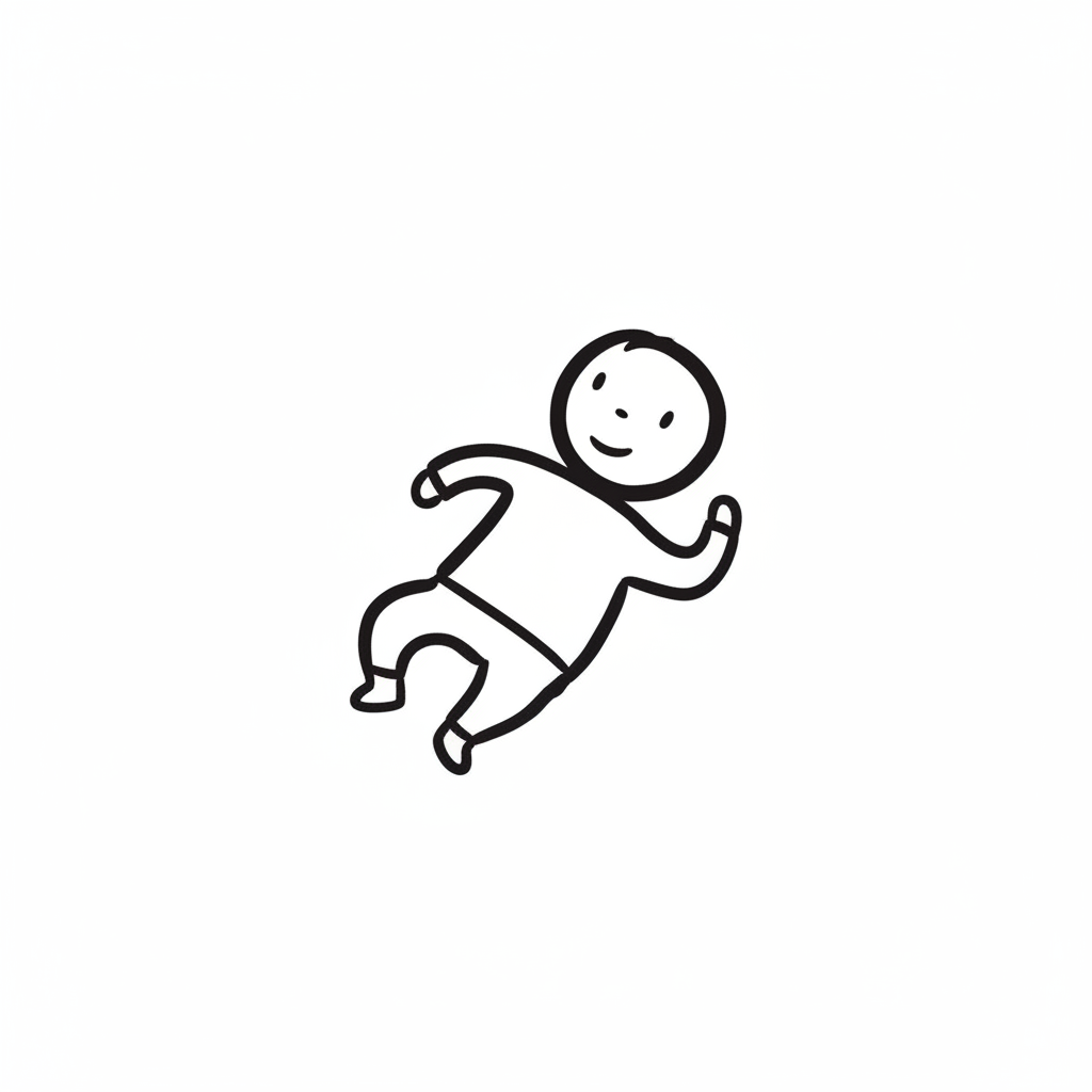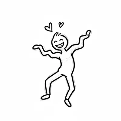 Eine einfache, fröhliche Strichfigur, die schwebt oder tanzt.
