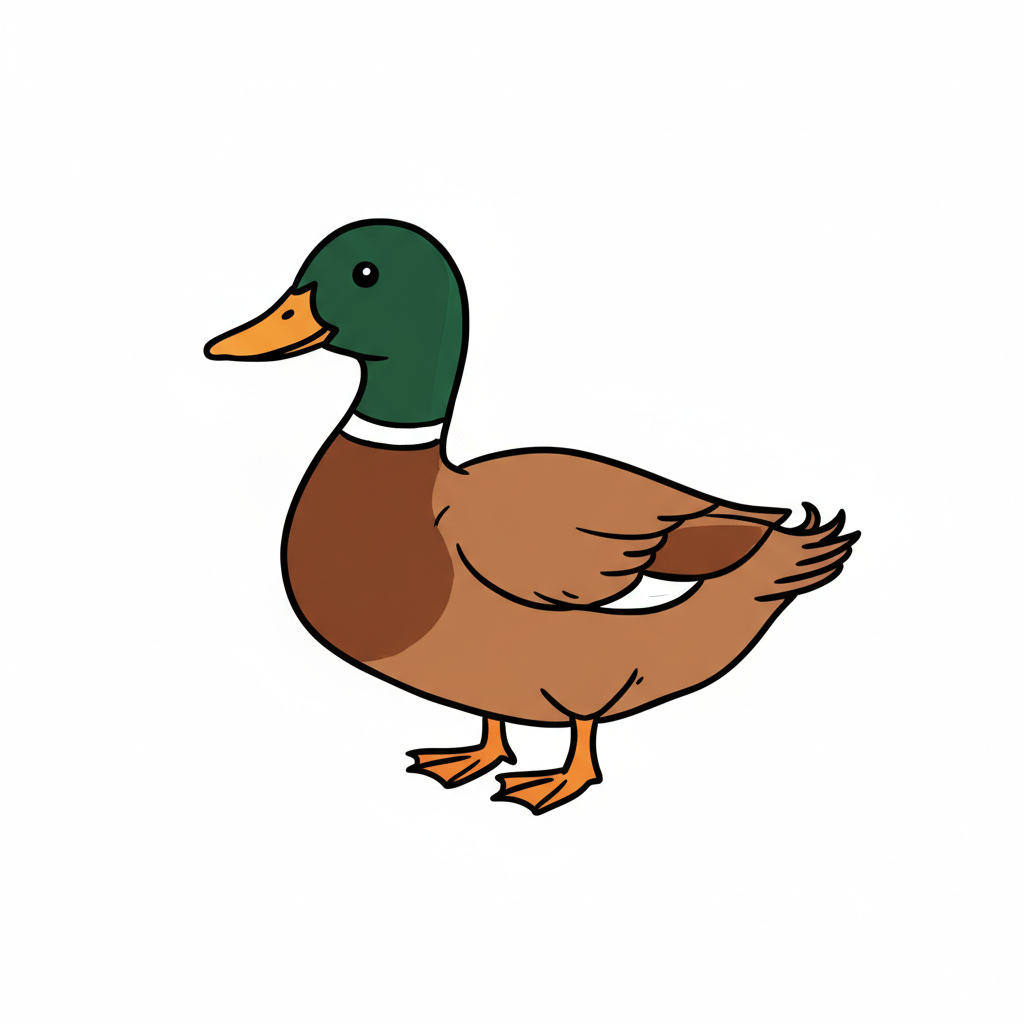 Eine niedliche, cartoonhafteente mit grünem Kopf und braunem Körper.