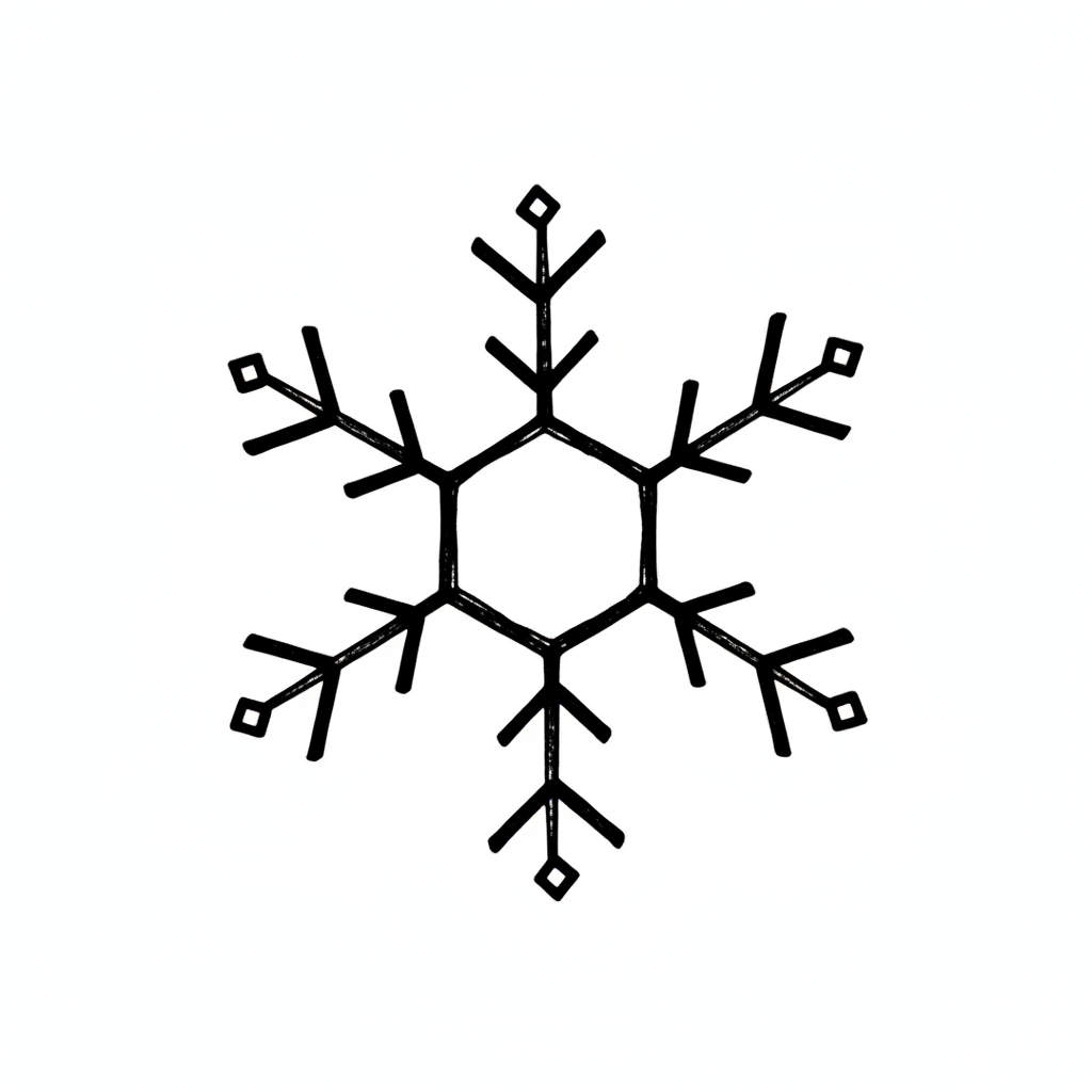 Schneeflocke mit symmetrischem Design in Schwarz.