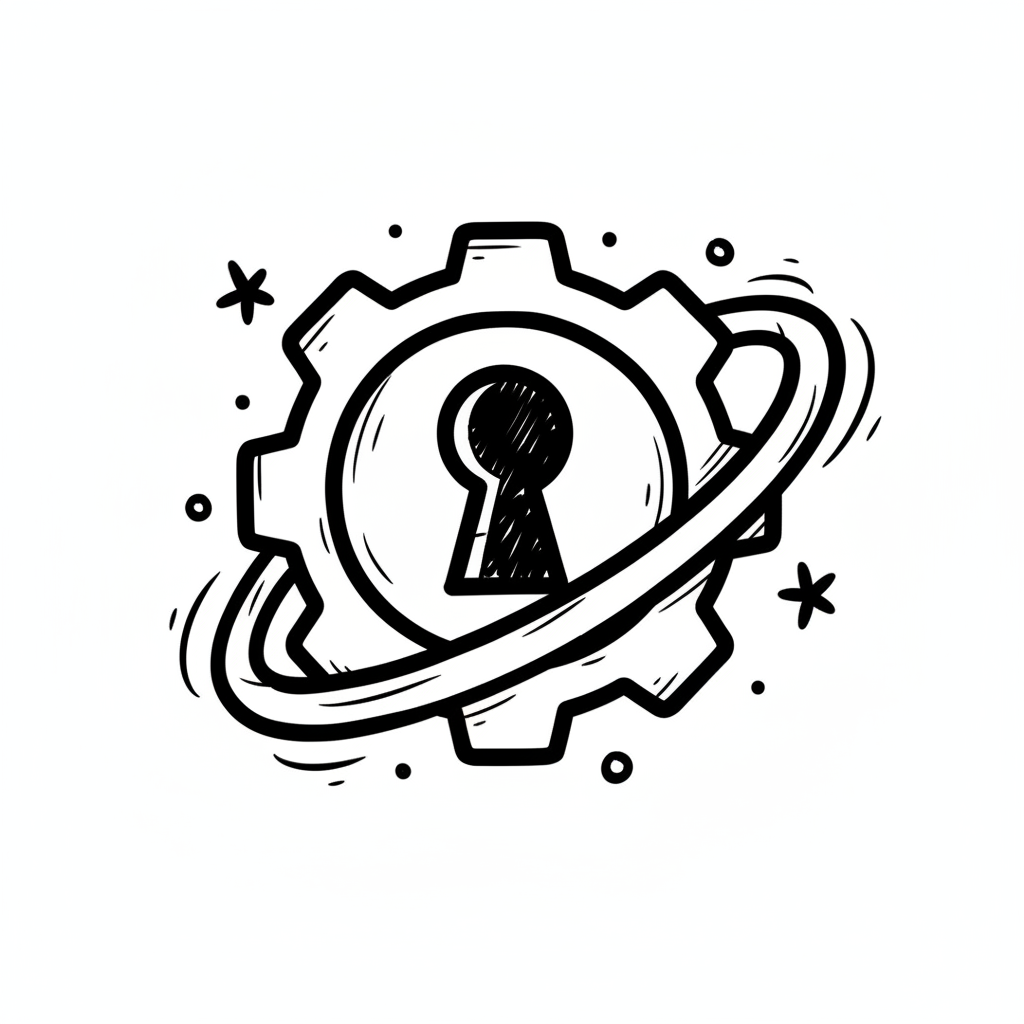 Skizze eines Zahnrads mit Schlüsselloch und umkreisendem Ring, im Doodle-Stil.