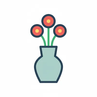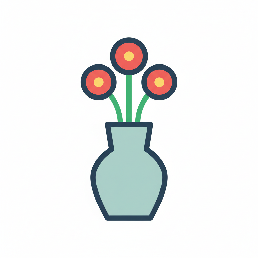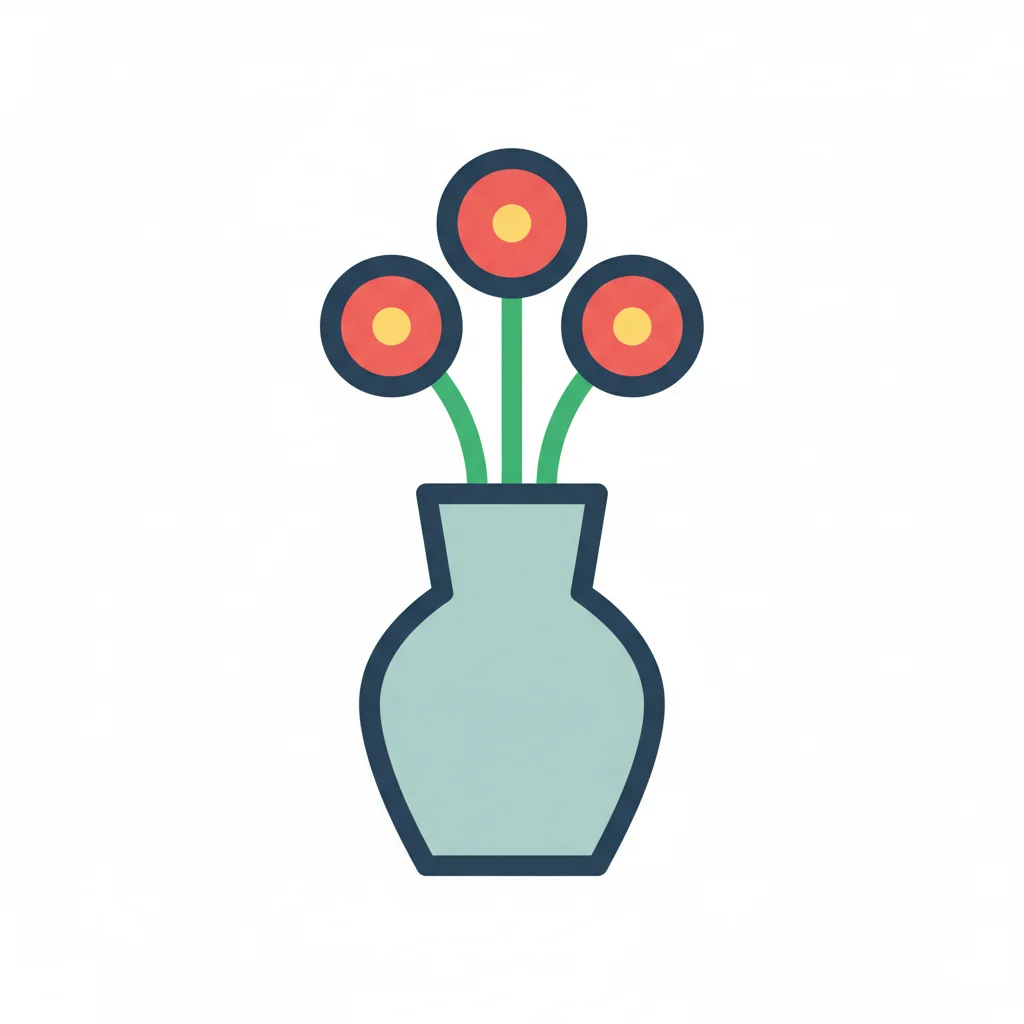 Buntes Icon einer Vase mit drei roten Blumen und grünen Stielen.