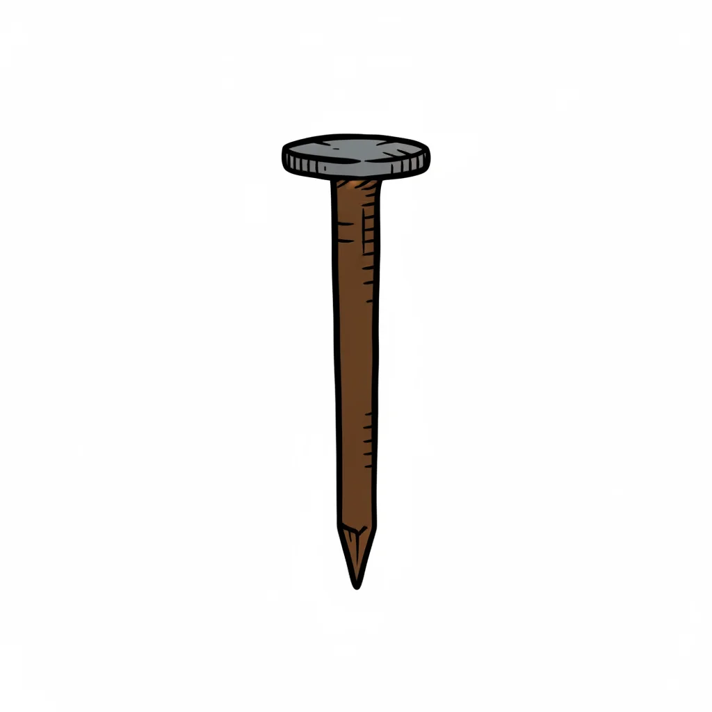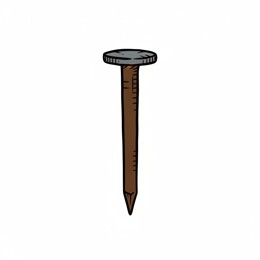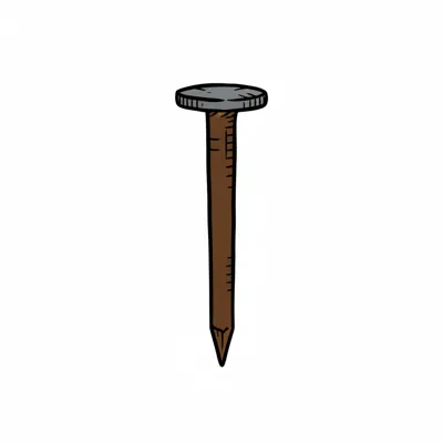 Ein gezeichneter Nagel mit braunem Schaft und grauem Kopf auf weißem Grund.