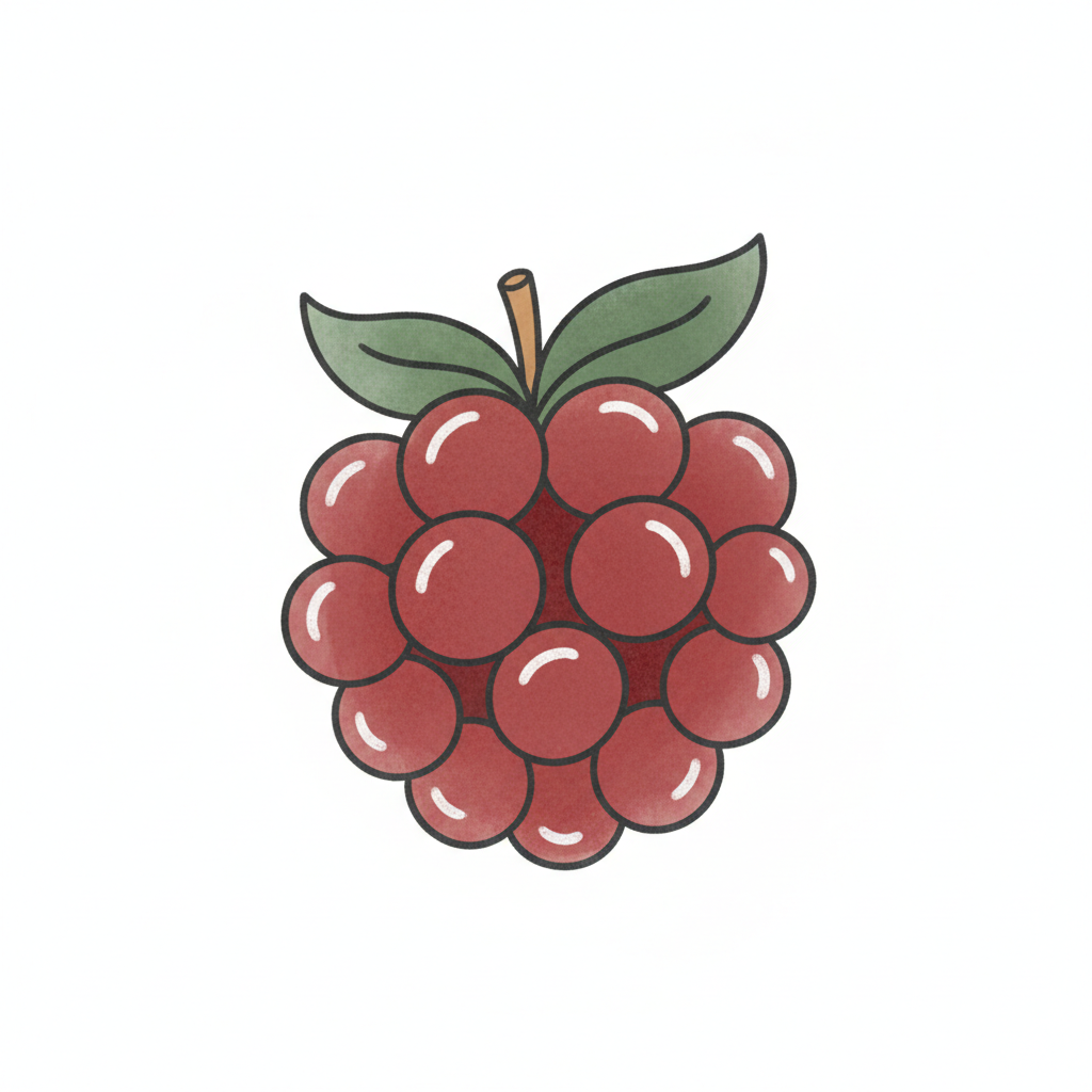 Aquarell-Illustration einer roten Himbeere mit grünen Blättern auf weißem Hintergrund.