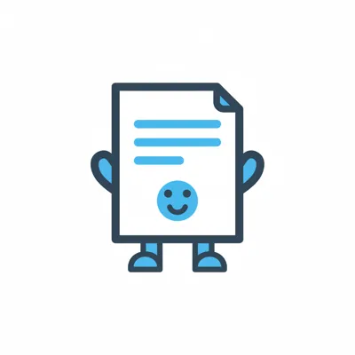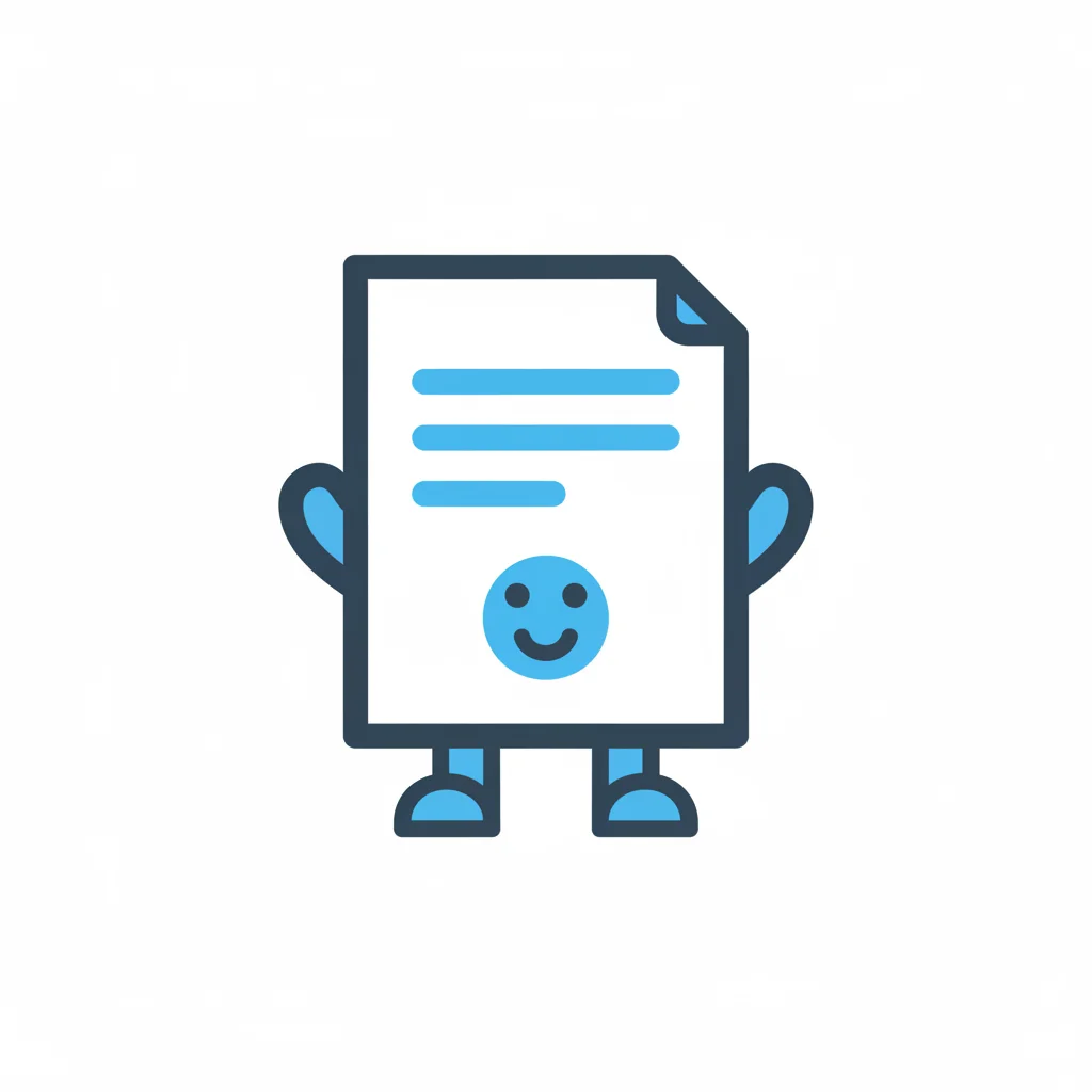 Glückliches Dokument-Icon mit Smiley, Armen und Beinen, symbolisiert positive Rückmeldung.