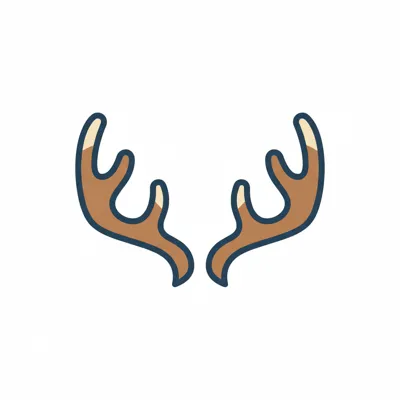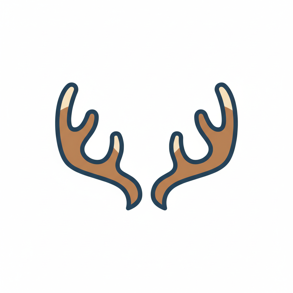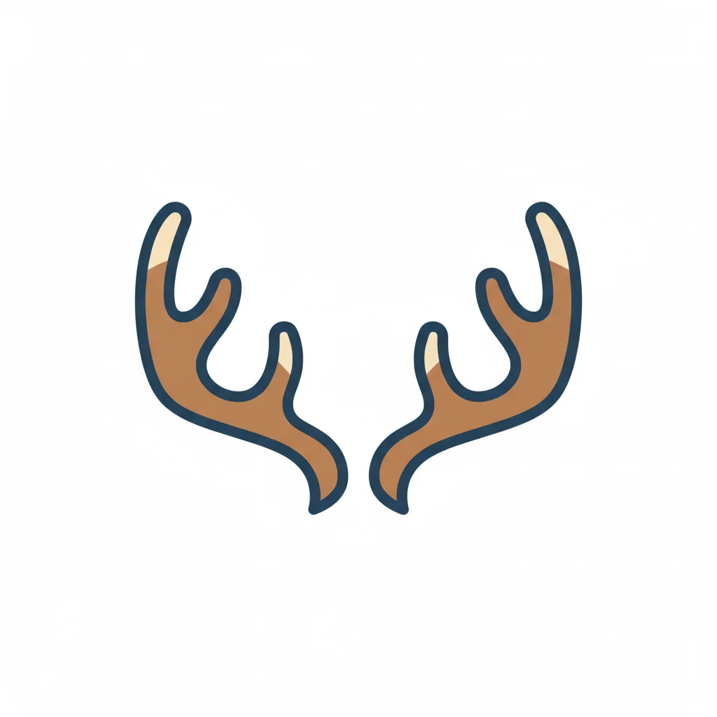 Stilisierte braune Rentiergeweihe mit blauer Umrandung auf weißem Hintergrund.