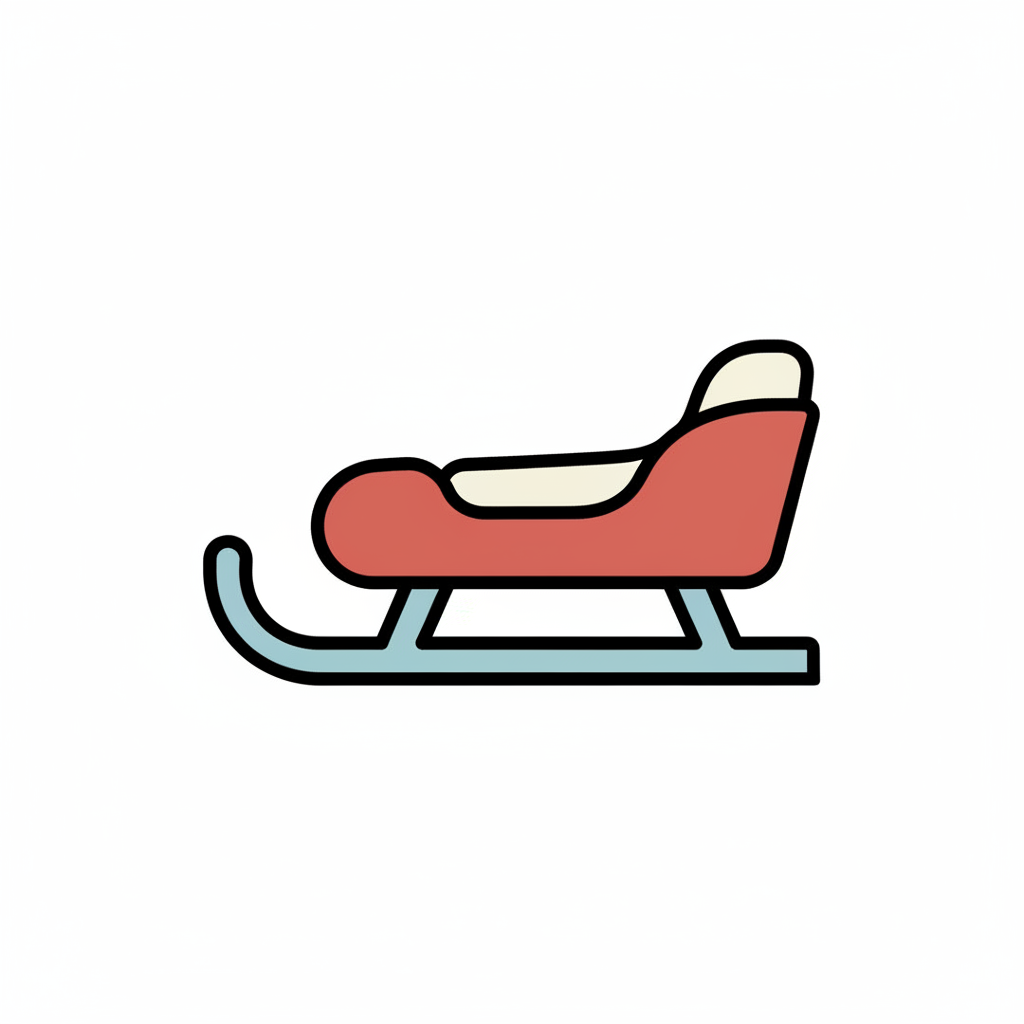 Roter Schlitten mit hellblauen Kufen und gelbem Sitz auf weißem Hintergrund.