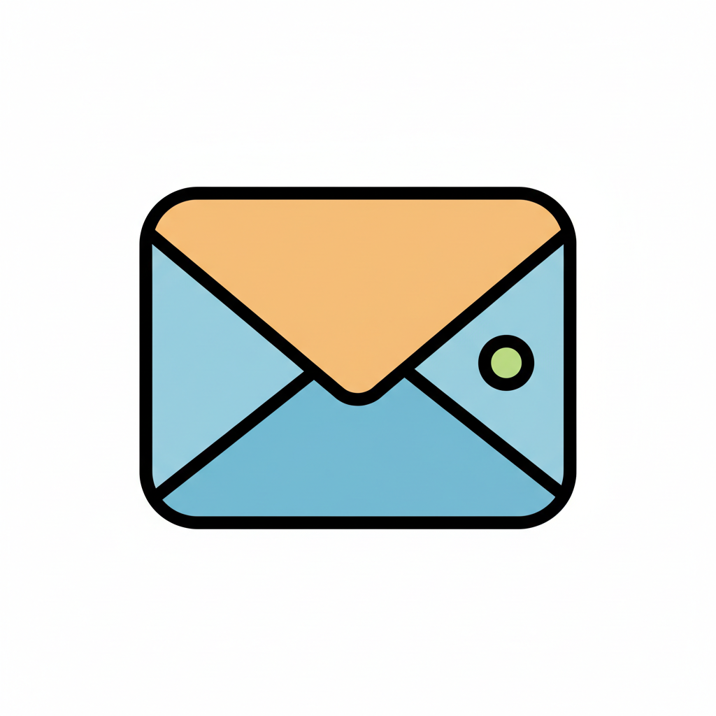 Buntes Icon eines geschlossenen Briefumschlags mit orangefarbener Klappe und grünem Benachrichtigungspunkt.