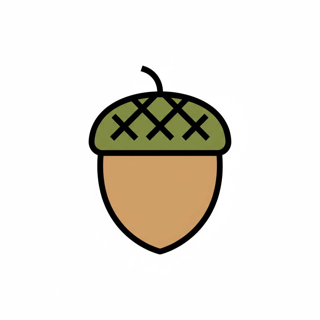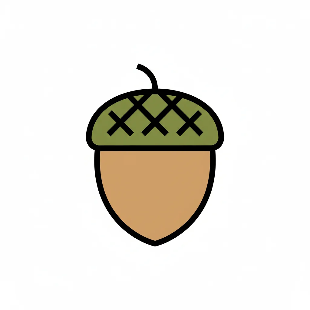Einfaches, farbiges Icon einer Eichel mit braunem Kern und grüner, gemusterter Kappe.