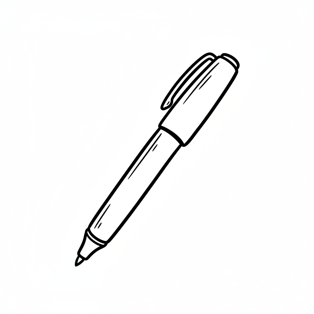 Einfache Schwarz-Weiß-Zeichnung eines Markers mit Kappe und Clip auf weißem Hintergrund.