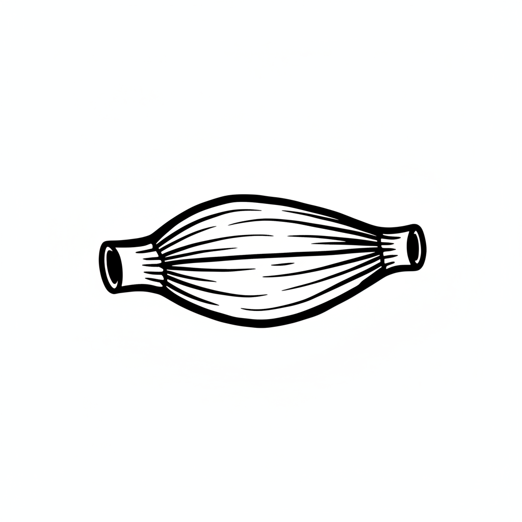 Einfache, schwarz-weiße Darstellung eines Muskels mit Sehnenenden.
