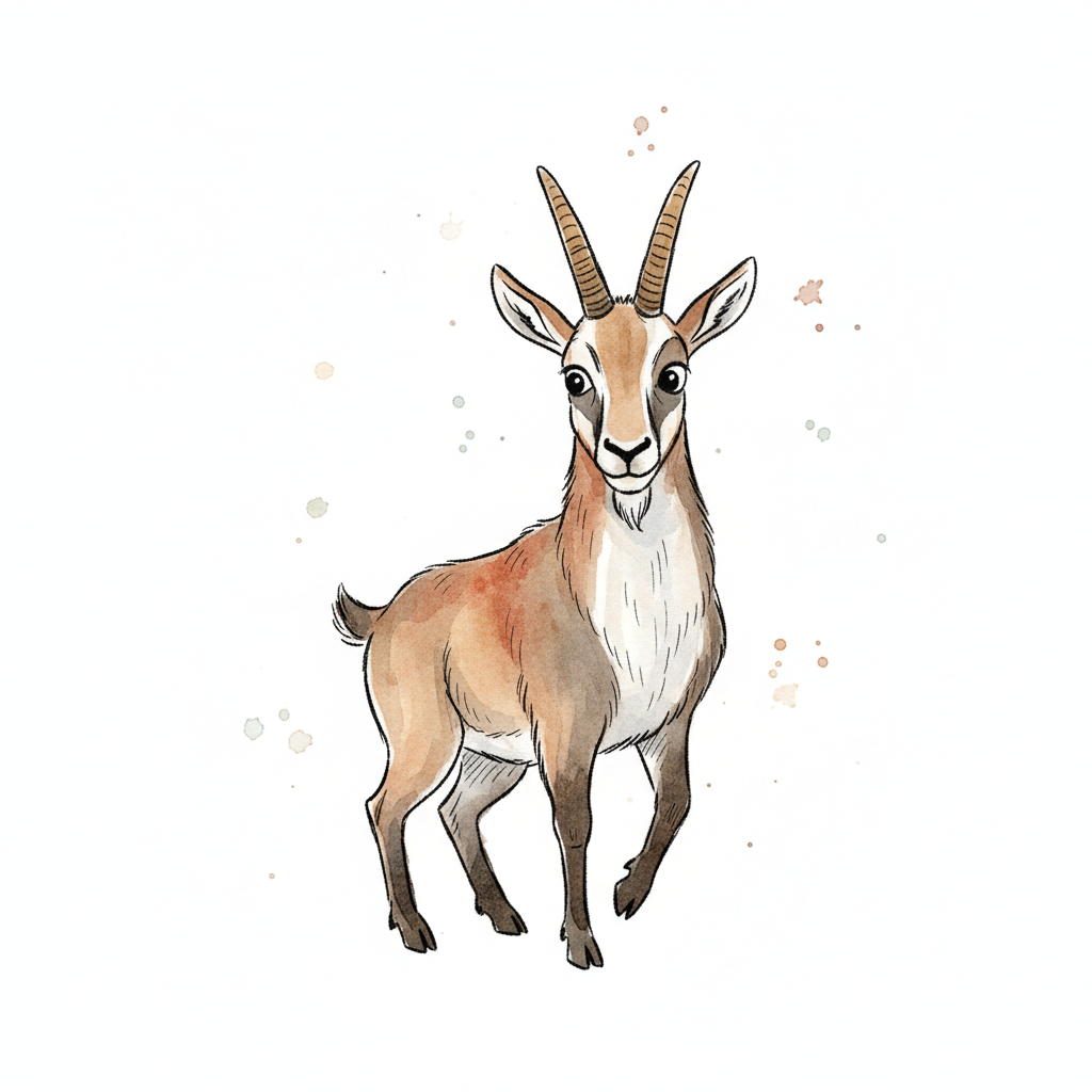 Eine illustrierte Antilope mit auffälligen Hörnern in sanften Farben.