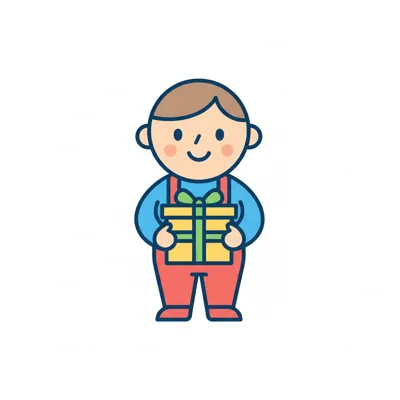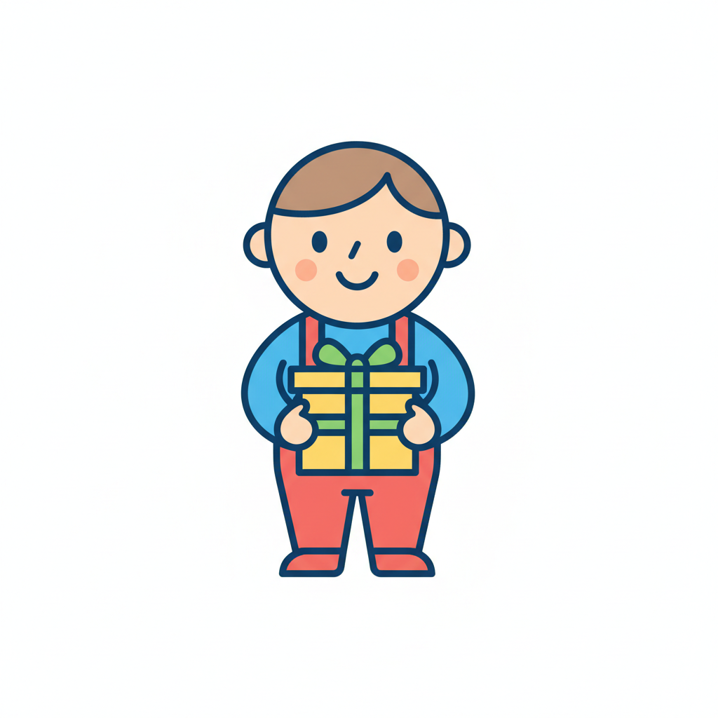 Ein lächelnder Junge hält ein Geschenk in den Händen.