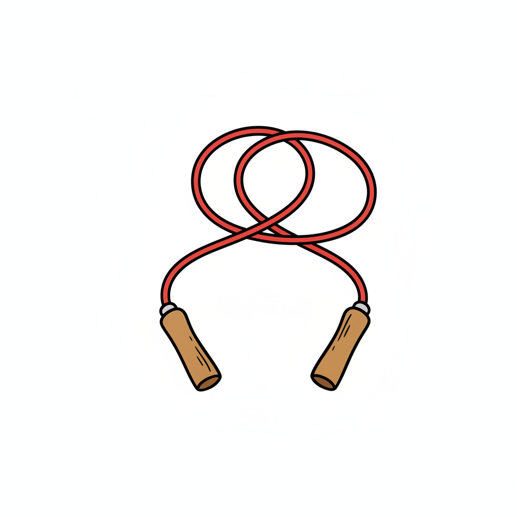 Eine rote Springseil-Illustration mit Holzgriffen auf weißem Hintergrund.