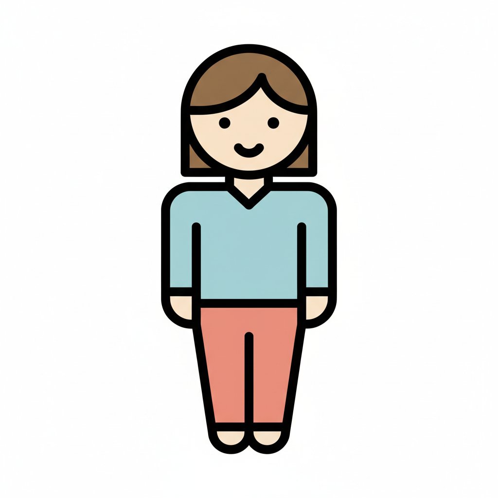 Minimalistische Vektorillustration im flächigen Icon-Stil. Sehr einfache, reduzierte Formen mit klaren, dicken Konturen und wenigen Details. Flächige Farben ohne Verläufe oder Texturen, ruhige Farbpalette, klare Silhouette und gut lesbare, freundliche Figur. Moderne, kindgerechte Lernillustration im Stil einfacher Piktogramme, sauberer Hintergrund und übersichtliche Komposition. Hoher Kontrast, isoliert auf weißem Hintergrund. WICHTIG: KEIN TEXT im Bild. Hintergrund: Rein weiß.