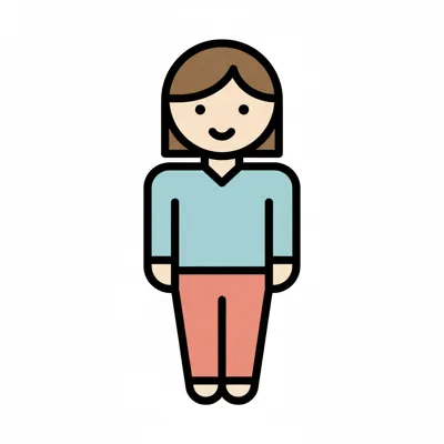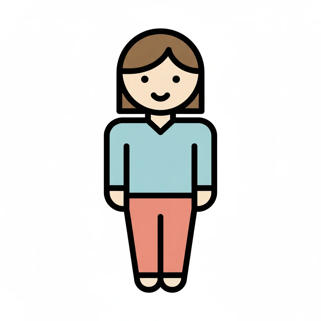 Ein einfaches, cartoonhaftes Bild einer Person mit kurzen Haaren.