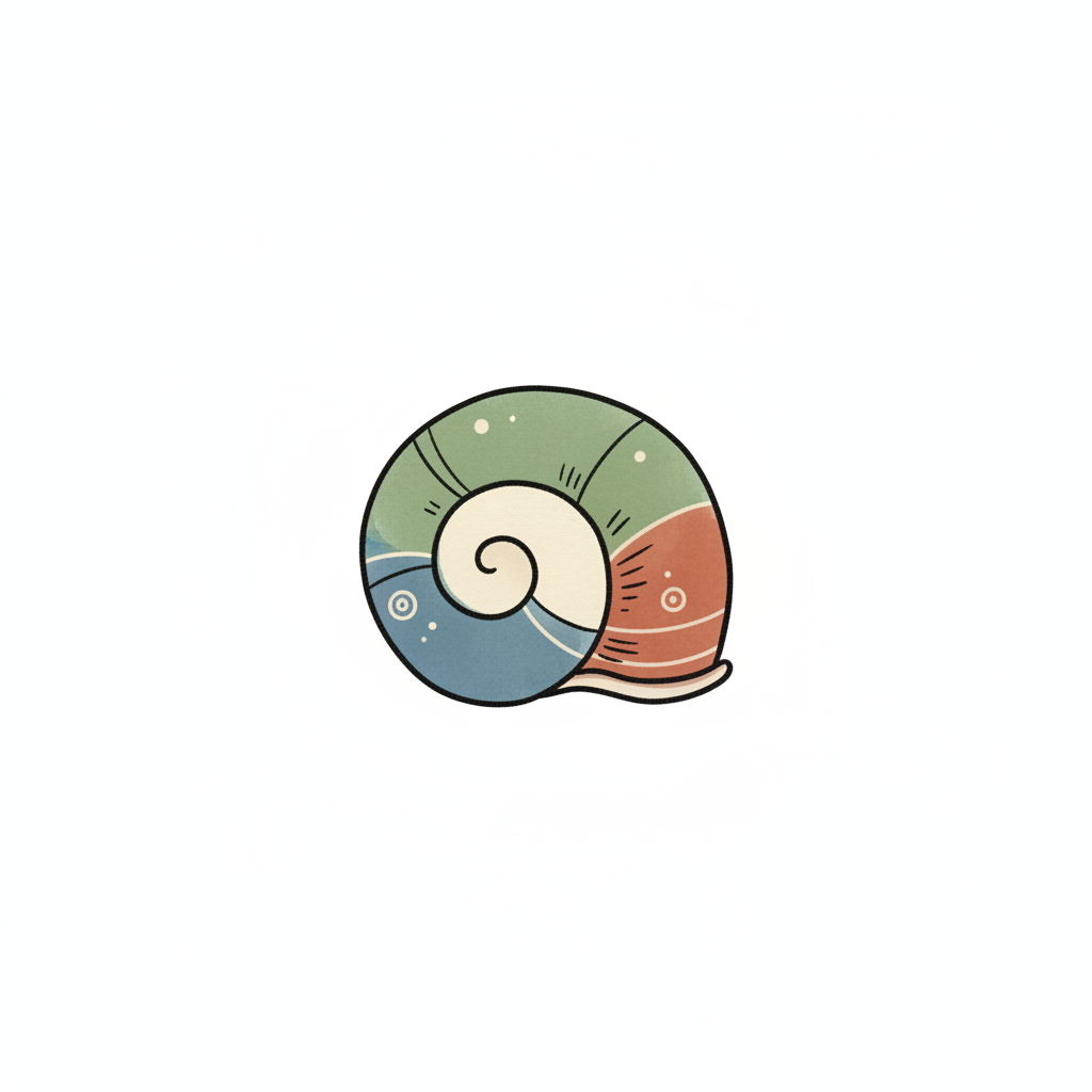 Bunte Schnecke mit spiralförmigem Muster und sanften Farben.