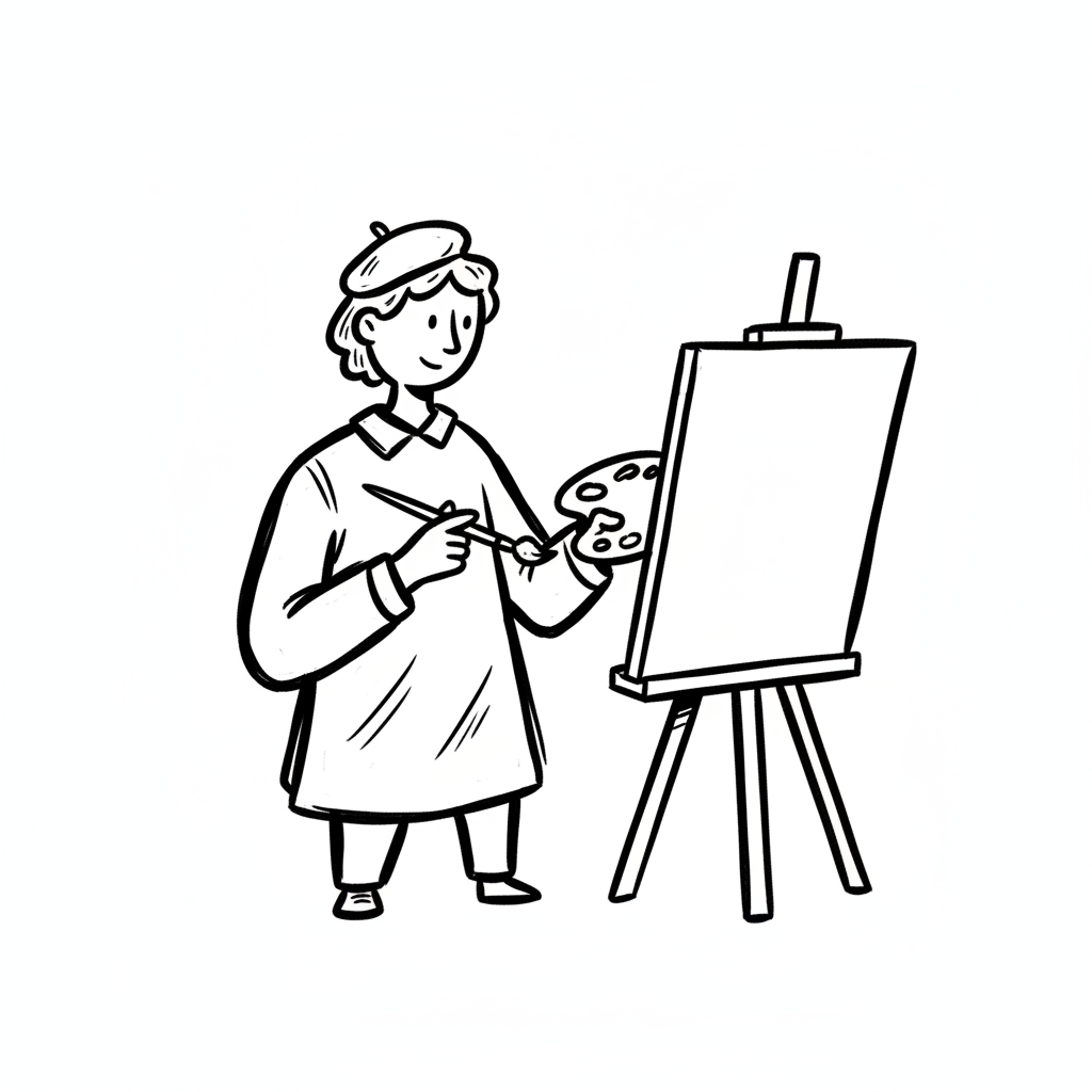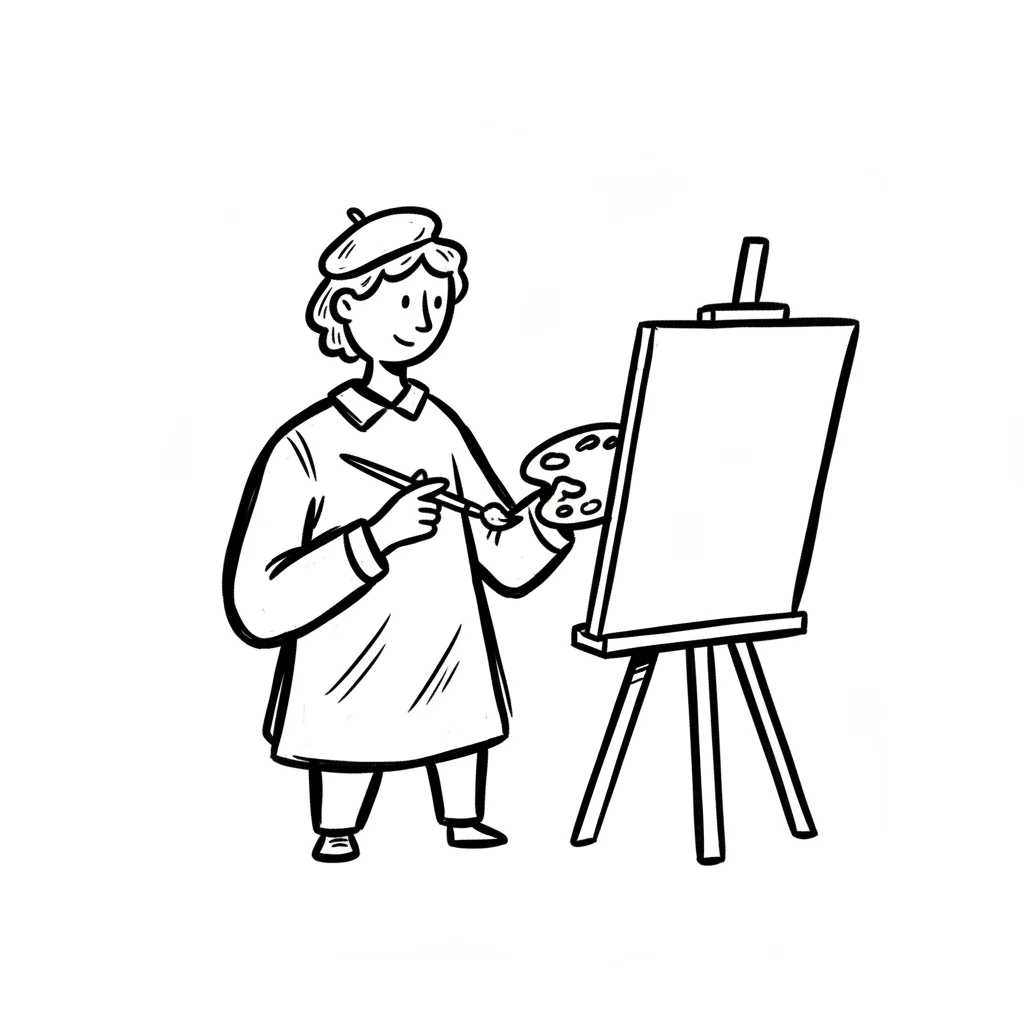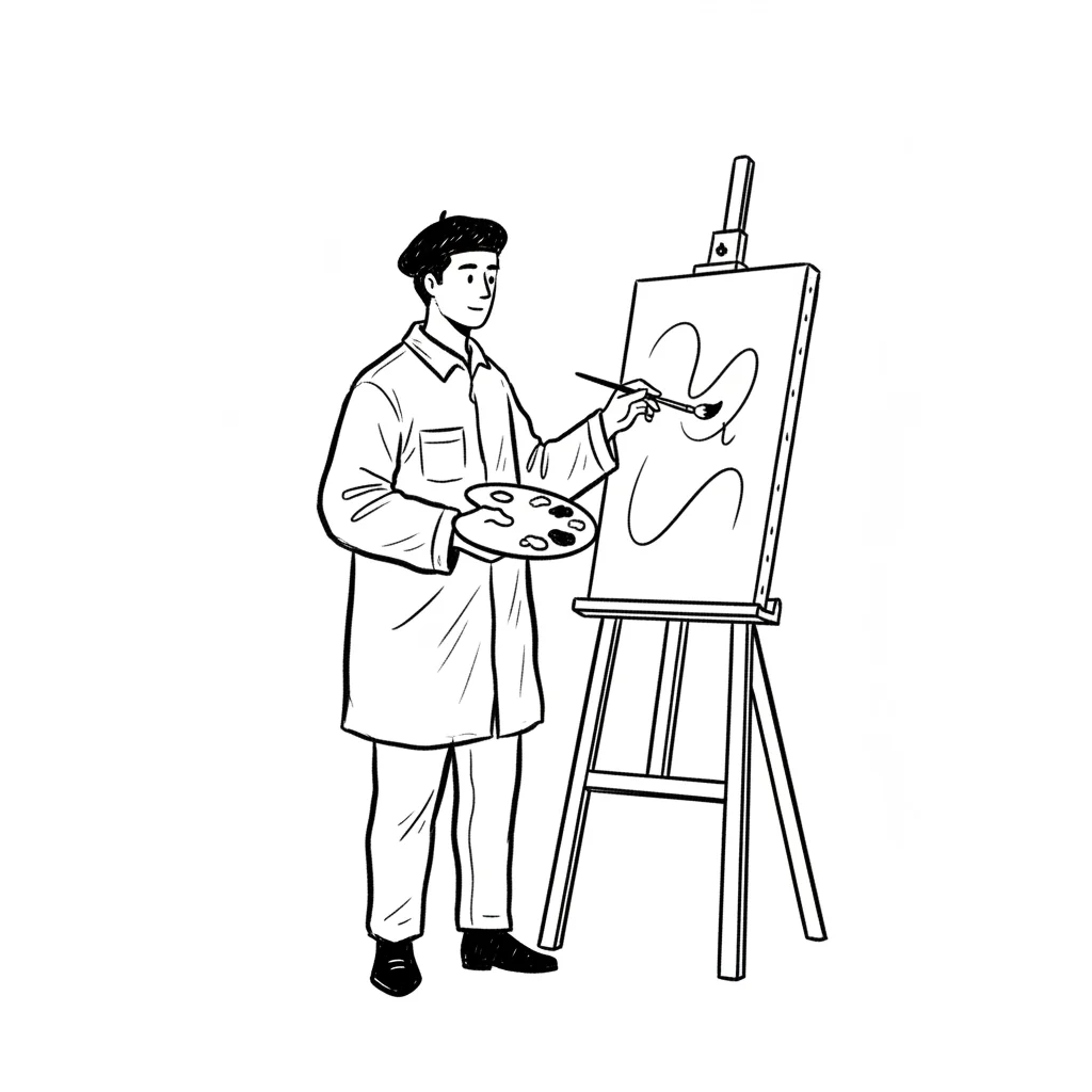 Ein Künstler malt an einer Leinwand mit einer Farbpalette.