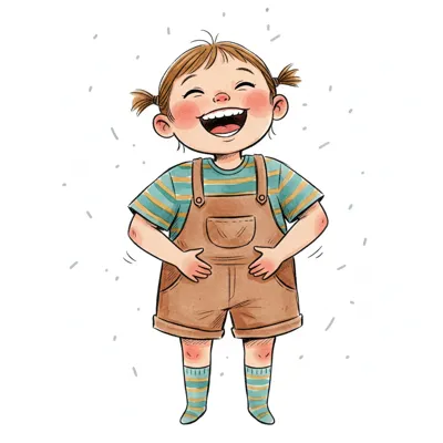 Niedliche, kindgerecht illustrierte Szene mit einem Kind oder einer Person als Hauptfigur, vor rein weißem Hintergrund, im frech-nordischen Aquarell-Skizzenstil. Klare, leicht wackelige Tuschekonturen, sichtbare Pinsel- und Strichtextur, dezente Schraffuren, weiche handgemalte Farbflächen in gedeckten Farben. Einfache, runde Formen. Keine harten Schatten, sondern sanfte, transparente Aquarellschichten. Leicht raue, handgezeichnete Linien statt glatter Vektorkanten. Subtile, vereinzelte Kritzelpunkte oder kleine Details im Hintergrund (wie Pünktchen oder feine Striche), aber keine echte Umgebung oder Landschaft. Die Figur ist mittig zentriert. Insgesamt charmant, humorvoll, warm und handgemacht wirkend. WICHTIG: Das Bild darf ABSOLUT KEINEN TEXT, KEINE BUCHSTABEN und KEINE ZAHLEN enthalten.