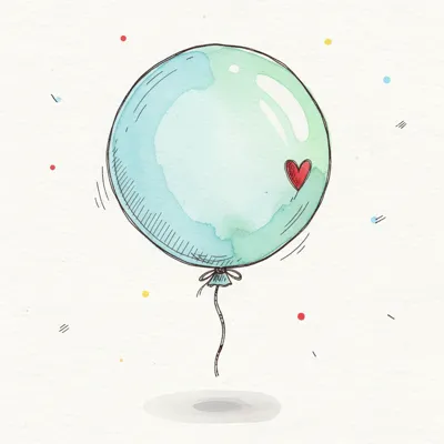 Ein kunterbunter Ballon mit Herzmotiv schwebt sanft in der Luft.