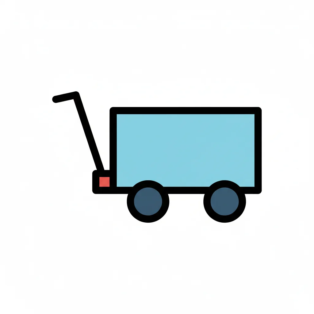 Einfache Vektorgrafik eines blauen Transportwagens mit Griff und Rädern auf weißem Grund.