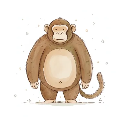 Niedliche, braune Cartoon-Affe-Illustration mit hellem Bauch und freundlichem Gesicht.