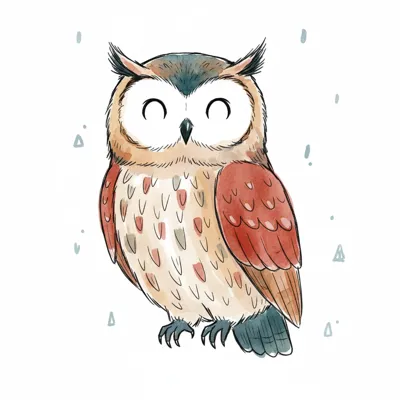 Niedliche, lächelnde Eule in Aquarell-Illustration mit erdigen Farben und schlichtem Hintergrund.