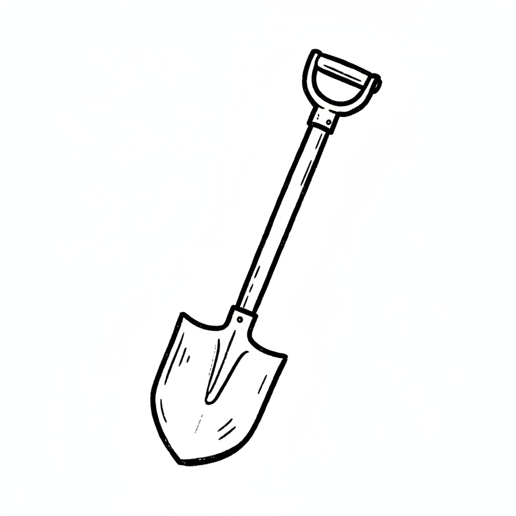 Eine gezeichnete Schaufel mit einem langen Griff und einem breiten Blatt.