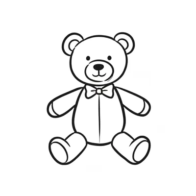Ein niedlicher Teddy mit einer Schleife, in einfacher Linie gezeichnet.