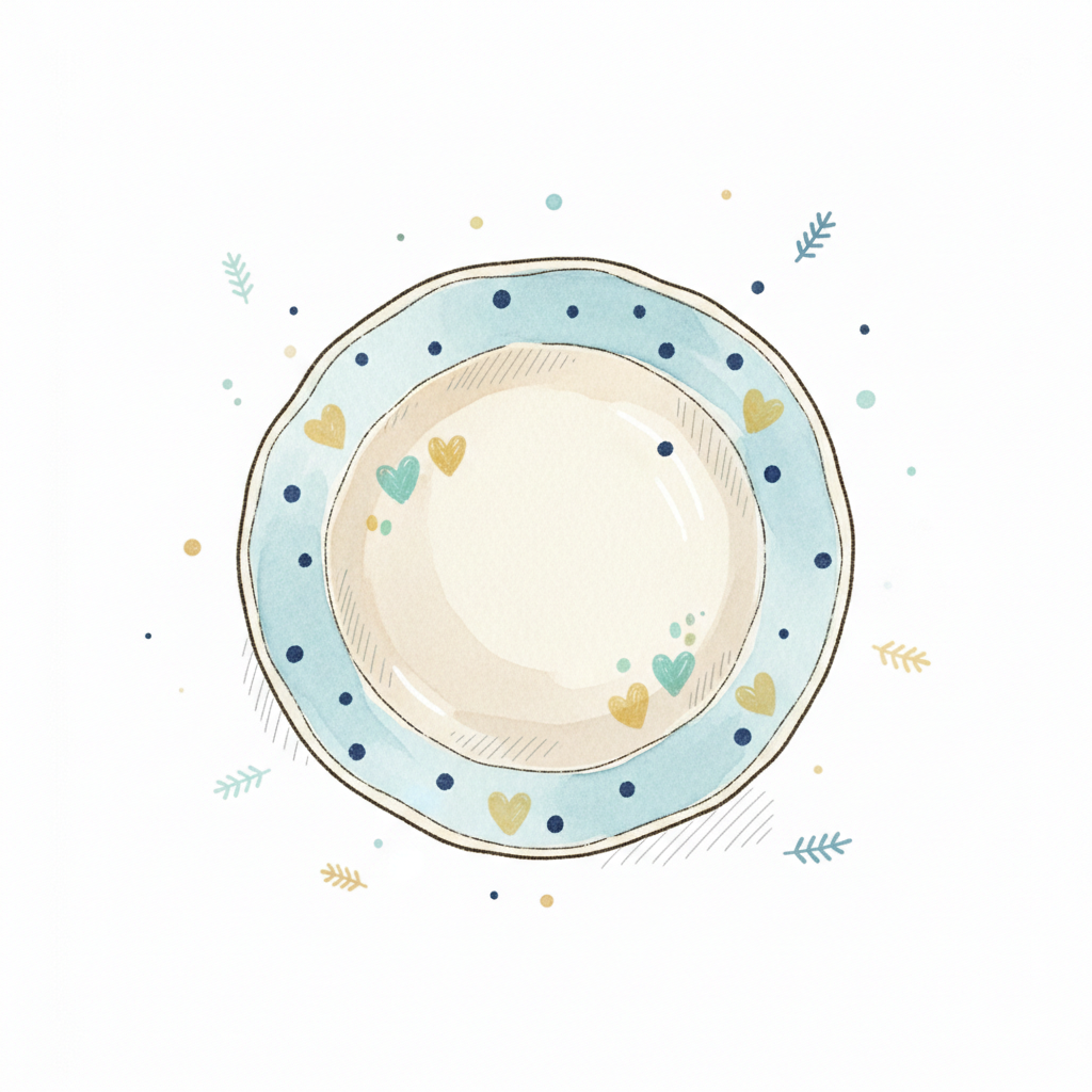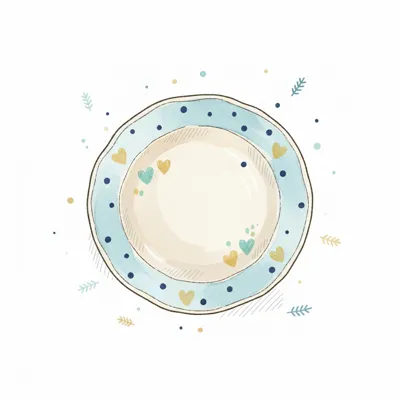 Ein einfacher Teller mit einem blauen Rand und herzförmigen Motiven.