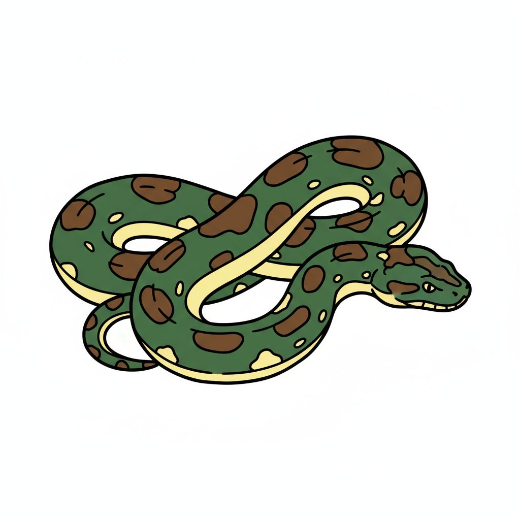 Eine grüne Schlange mit braunen Flecken, kunstvoll gestaltet.
