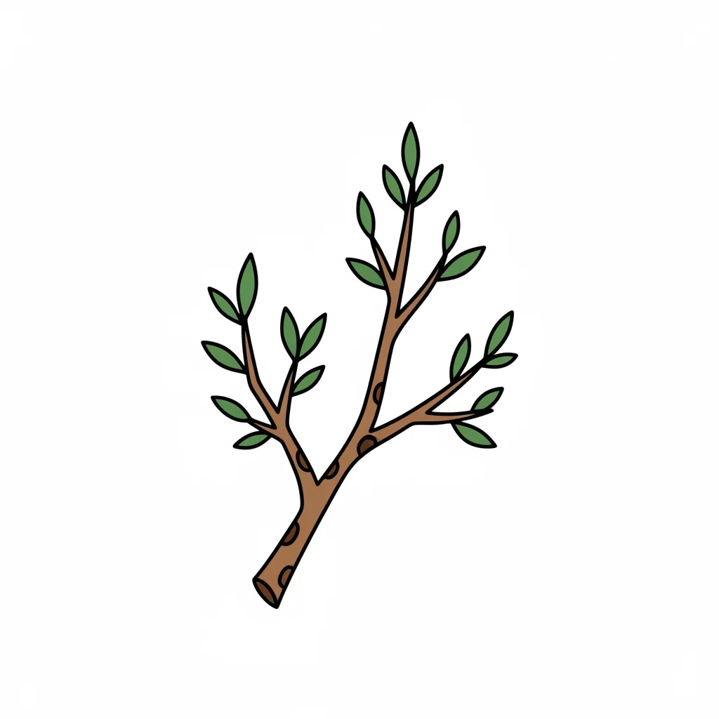 Illustration eines Zweigs mit grünen Blättern.
