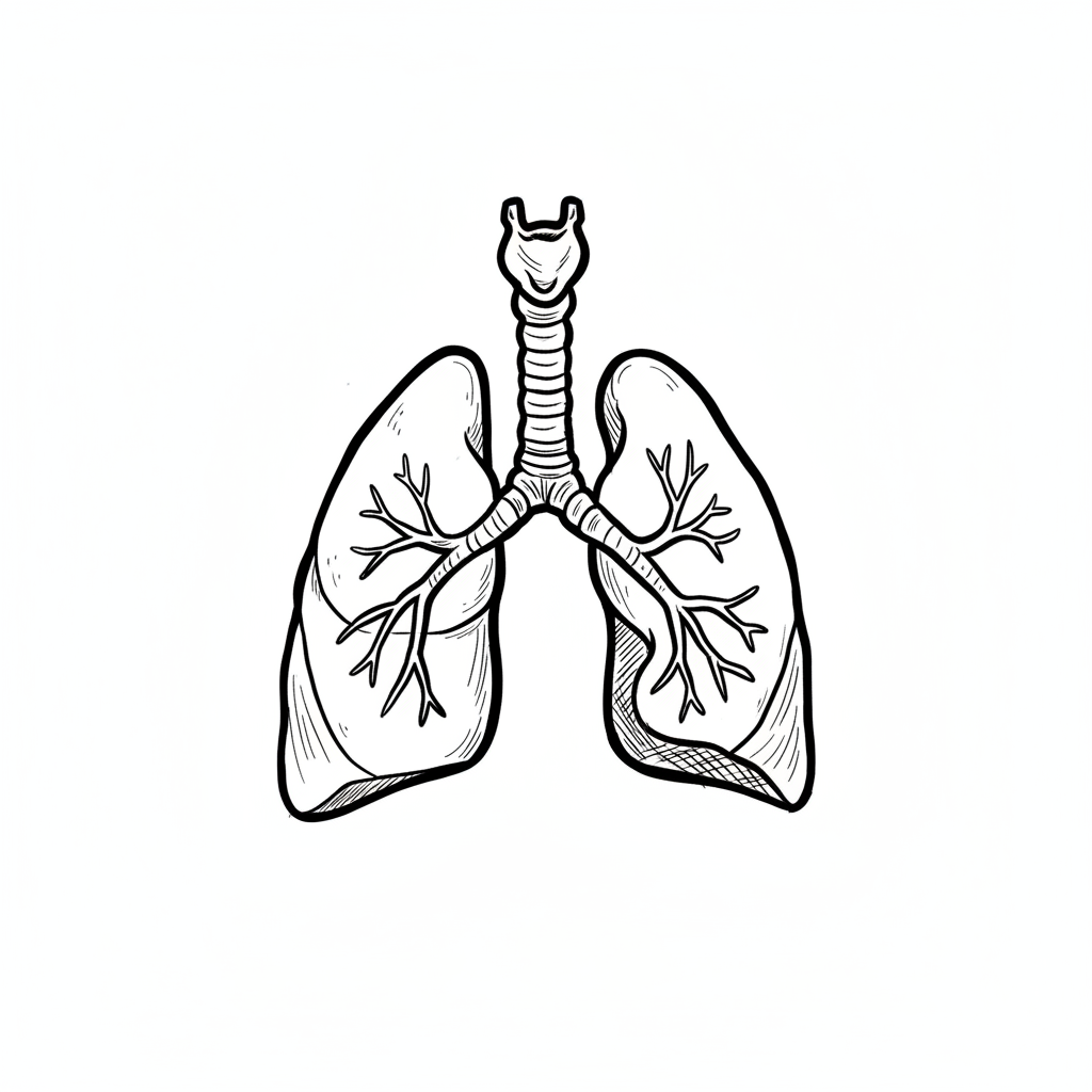 Schwarz-weiße Skizze der menschlichen Lunge mit Luftröhre und Bronchien.