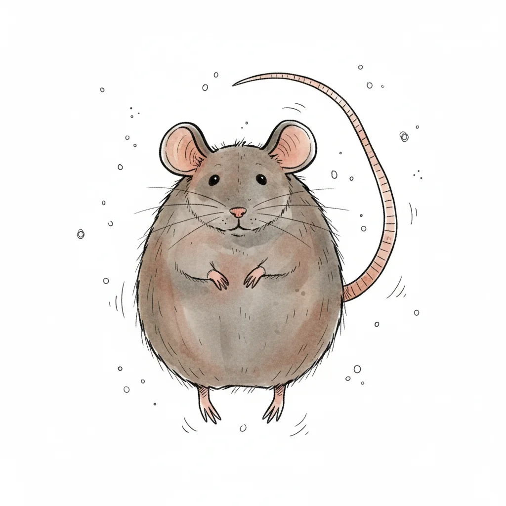 Niedliche, runde Maus-Illustration in Aquarell auf weißem Hintergrund.