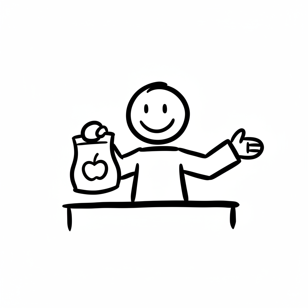 Eine minimalistische Schwarz-Weiß-Skizze. Handgezeichnet, mit Tintenmarker, dicken Konturen. Minimalistische Strichzeichnung, isoliert auf weißem Hintergrund. Keine Schattierungen, kein Grau, hoher Kontrast. Skizzenhafte Ästhetik, verspielt und grob. Hoher Kontrast, isoliert auf weißem Hintergrund. WICHTIG: KEIN TEXT im Bild. Hintergrund: Rein weiß.