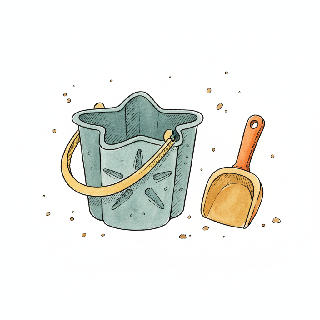 Ein Eimer und eine Schaufel, ideal für den Sandkasten.